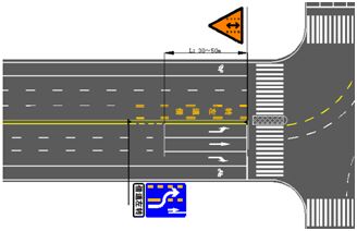 (1)開口端至停止線距離應(yīng)結(jié)合路口導(dǎo)向車道線長(zhǎng)度,建議長(zhǎng)度30~50m。
