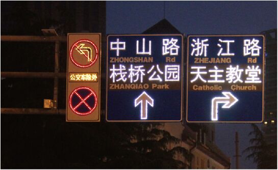 “主動(dòng)發(fā)光標(biāo)志”概念的創(chuàng)建,是用于區(qū)別普通逆反射交通標(biāo)志的,我們都知道,逆反射交通標(biāo)志是通過接受外部光源照射而被動(dòng)反光,從而實(shí)現(xiàn)將標(biāo)志版面交通語言信息向駕駛?cè)藗鬟f的功能。主動(dòng)發(fā)光標(biāo)志,即“采用LED等主動(dòng)發(fā)光器件為發(fā)光源顯示圖形符號、文字等內(nèi)容,向道路利用者傳遞信息的交通標(biāo)志”(定義取自《LED主動(dòng)發(fā)光道路交通標(biāo)志》(GB/T31446-2015)),不需要外借光源,能主動(dòng)發(fā)光,并同時(shí)兼具逆反射功能。
