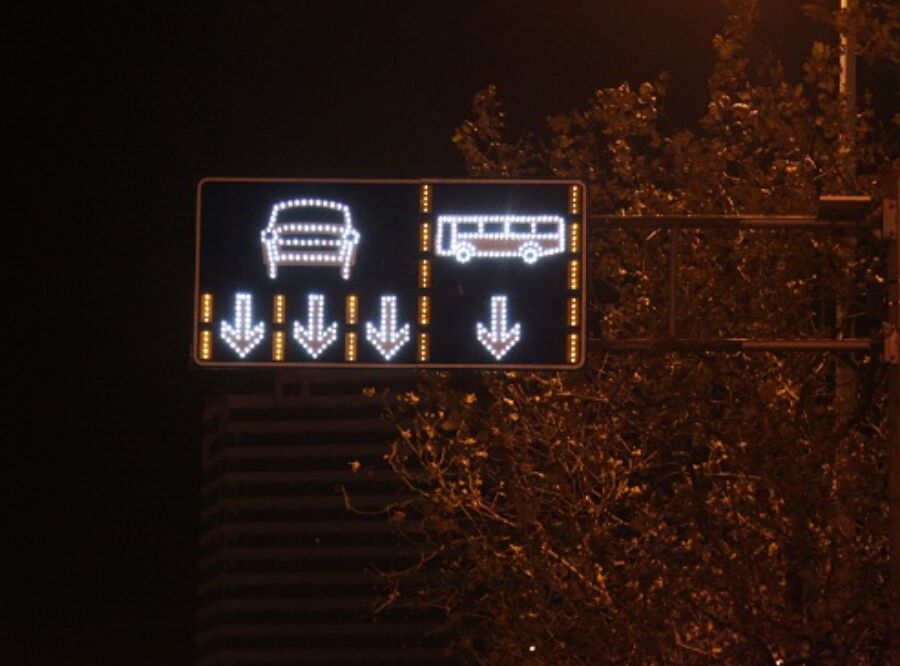 主動發(fā)光標志因其獨特的主動發(fā)光功能,不需要借助外部光源照射,自身可以主動發(fā)光,能清晰地顯示標志交通語言信息,有效規(guī)避城市遠光燈誘發(fā)的事故隱患;同時,主動發(fā)光標志,在大角度視認、惡劣天氣(雨、霧、霾、冰凝等)、惡劣環(huán)境(逆光、小半徑彎道、畸形交叉口等)等交通條件下,仍具備獨特的視認效果,能彌補普通逆反射標志在上述條件下的功能不足現(xiàn)象。小型主動發(fā)光標志,如禁令標志、指示標志、警告標志等,可通過設(shè)置閃爍模式,能有效提高動態(tài)警示效果,加強視認易捕捉性,宣誓管理意志;如線形誘導標志(俗稱:“彎道誘導標志”),可通過設(shè)置總控模式,讓一組彎道標志,按照“波浪追逐”或“同步閃爍”模式,加強彎道邊緣軌跡誘導警示。