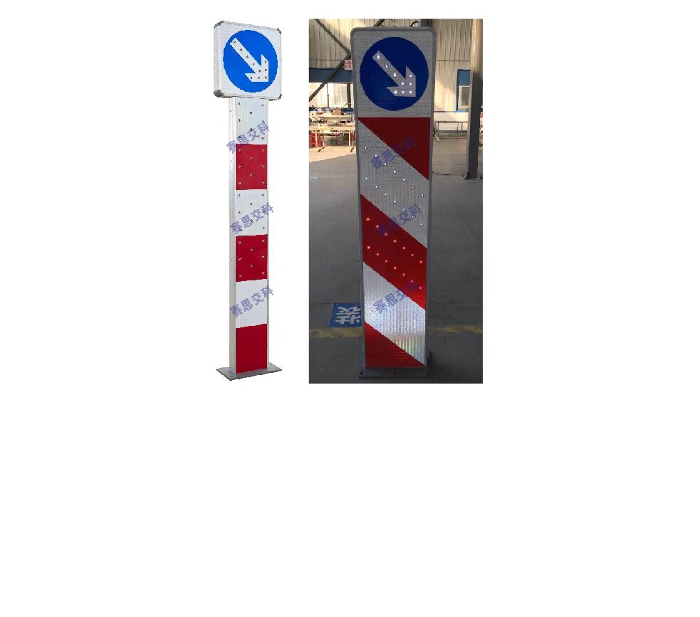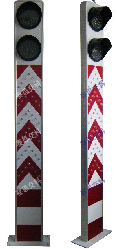 2、基本說明:一體式柱體結構,標志版面圖案中設置紅滿屏燈、紅滿屏燈,交替閃爍,柱體上設置警示發(fā)光管,采用太陽能蓄電池供電,設置于危險路段分道、高架匝道上下口等。