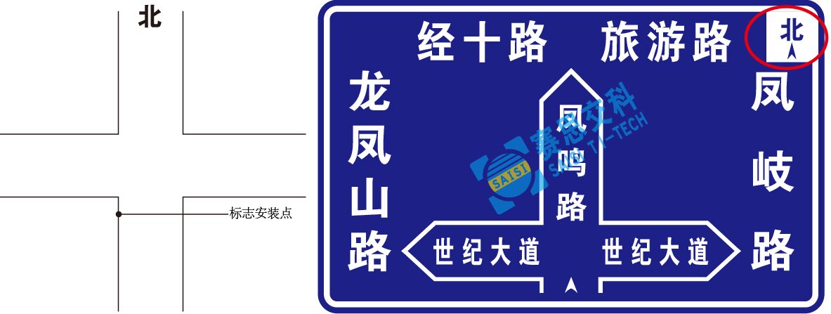 3、設(shè)置在行駛方向左側(cè)時可在其版面右側(cè)上角標(biāo)識地理方向信息;