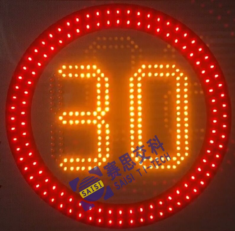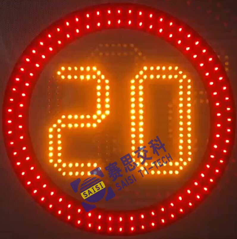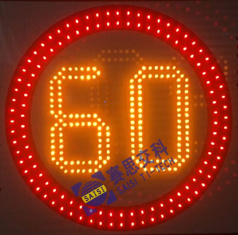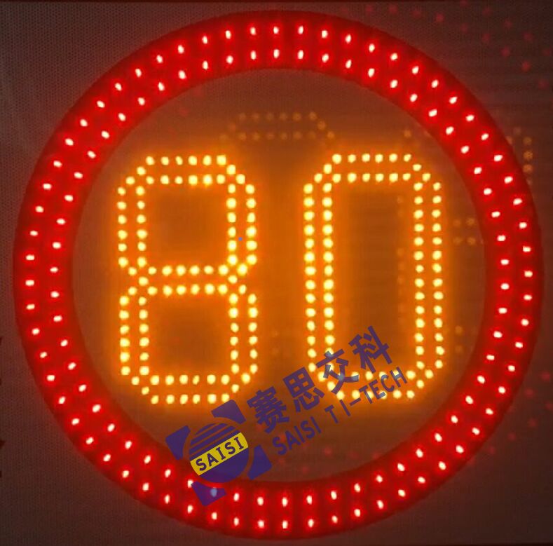 2、工藝說明:在限速標志版面紅圈中嵌入密集LED點陣,并布設“8”字數碼筆畫板,通過手動激發(fā)式控制方式,根據路段管制需求,動態(tài)設置限速值。