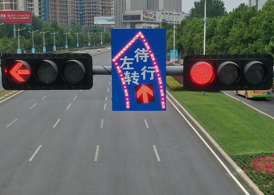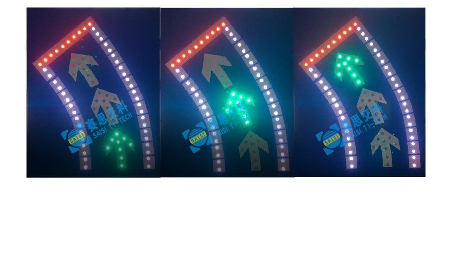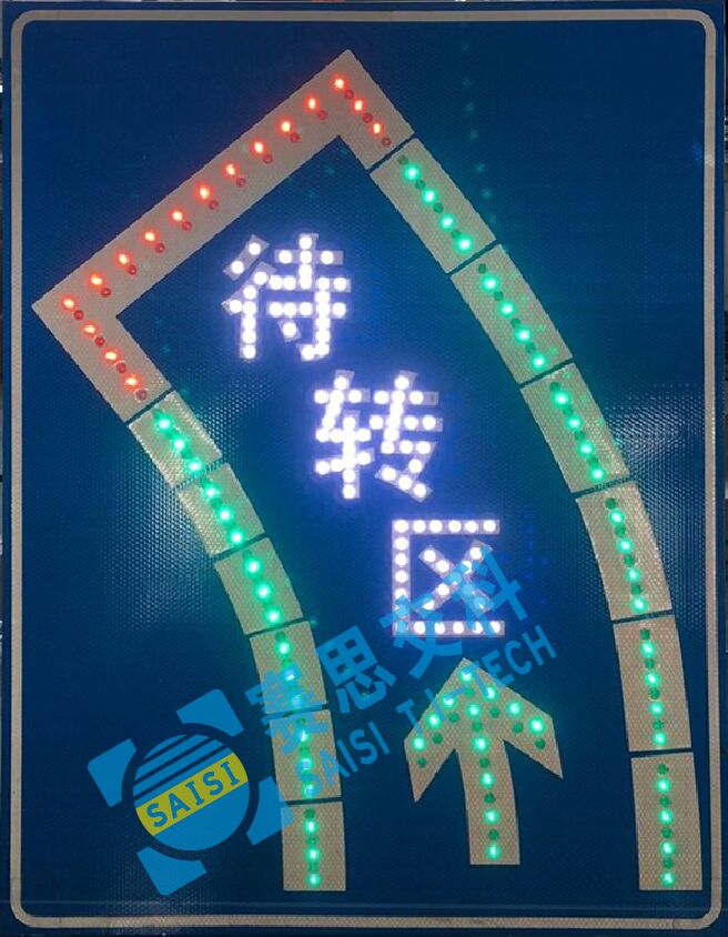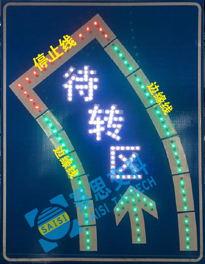 2、工藝說明:標(biāo)志版面由雙色LED發(fā)光管組成邊框、箭頭圖形,和待轉(zhuǎn)區(qū)文字,通過控制模塊調(diào)取信號燈燈色狀態(tài),在標(biāo)志版面形成動態(tài)三種顯示狀態(tài),動態(tài)引導(dǎo)待轉(zhuǎn)車流通行權(quán)限。