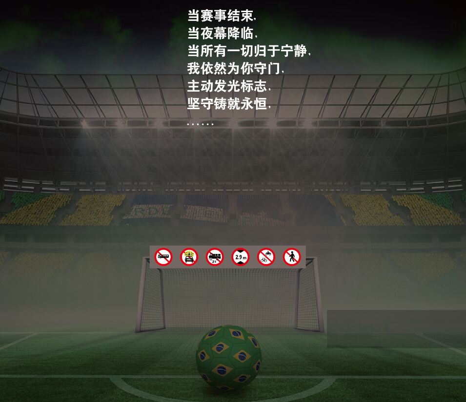 主題:當賽事結(jié)束后,球門仍在那里為你敞開;當夜深后,發(fā)光標志仍在默默守護安全。