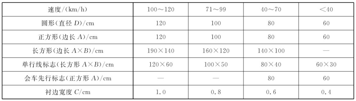 設(shè)置在胡同、隔離帶的指示標志,設(shè)置空間受限制時,如果采 用柱式標志可采用最小值,指示標志的直徑(或短邊邊長)最小不應(yīng)小于50cm。