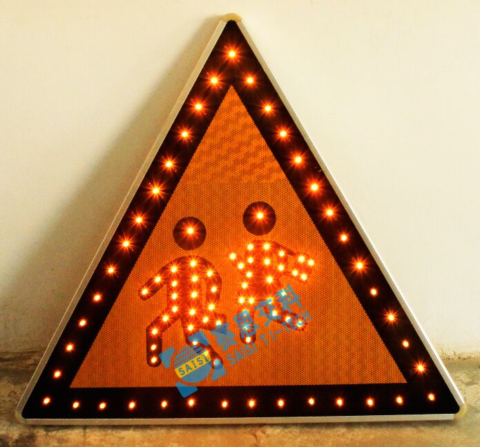 中小學(xué)學(xué)校附近,是未成年學(xué)生經(jīng)常出現(xiàn)的區(qū)域,中小學(xué)生普遍交通安全意識、自我防護意識薄弱,且出行的軌跡存在極大的隨意性、不規(guī)則性,屬于不穩(wěn)定性交通流,給區(qū)域交通帶來一定安全隱患,采用點陣式主動發(fā)光標志,能增強司機路過學(xué)校周邊的謹慎駕駛意識,為學(xué)生們提供安全、和諧的交通環(huán)境。
