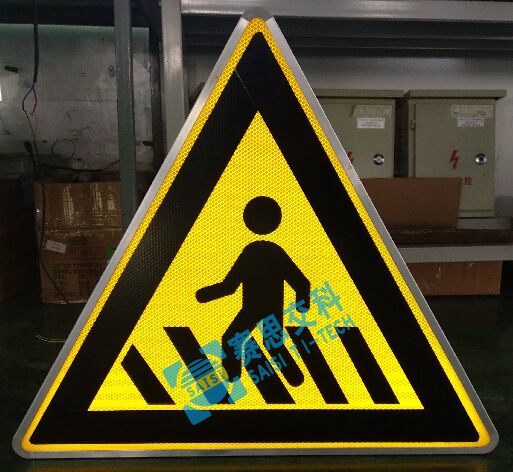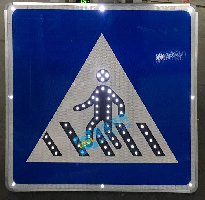 (3)注意行人發(fā)光警告標(biāo)志(輔標(biāo)"有人過(guò)街、注意禮讓")