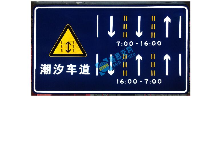 在城市交通中,一些路段經(jīng)常會(huì)出現(xiàn)周期性正、逆方向交通流高峰交替現(xiàn)象,如:某路段,整體為東西方向走向,道路西端為密集辦公區(qū),道路東端為住宅集中區(qū),早高峰時(shí),東側(cè)住宅區(qū)的上班族早晨開車去西端上班,由東向西交通流密集,反方向則車輛較少;晚高峰時(shí),西側(cè)的上班族下班向東段回家,由西向東交通流密集,反方向則車輛較少;為合理優(yōu)化道路使用率,均衡雙向交通流量分布,優(yōu)化交通組織,可開辟中央車道做潮汐車道,配置潮汐車道標(biāo)志,具體技術(shù)參數(shù)如下: