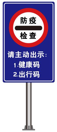 臨近防疫檢查卡口時(shí),應(yīng)當(dāng)設(shè)置必要的臨檢提示標(biāo)志,告知路段司機(jī)有義務(wù)配合防疫檢查。參考版面如下: