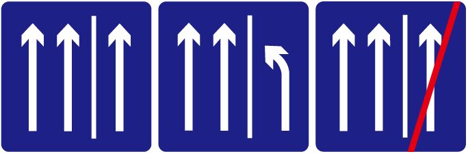 說明:表示該處硬路肩允許車輛通行,上左圖設(shè)置于起點(diǎn);上中圖設(shè)置于即將結(jié)束處,提示盡快合流;上右圖設(shè)置于終點(diǎn)處。
