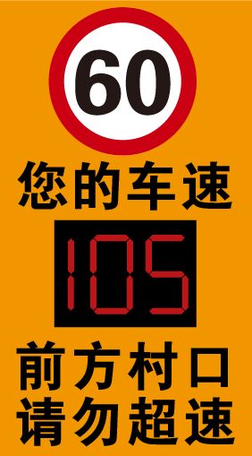 標(biāo)志整體尺寸為1000mm(寬)*1800mm(高),其中速度值采用三位8型數(shù)字顯示,顯示面積為420mm(高)*560mm(寬),最大顯示速度為199km/小時,也可選擇采用顯示屏顯示。標(biāo)志采用附著式立柱安裝方式,用抱箍連接件固定,版面如下圖所示,其中限速60km/小時,可選擇采用內(nèi)置照明全透發(fā)光工藝技術(shù),或LED外置點(diǎn)陣發(fā)光工藝技術(shù),實(shí)現(xiàn)速度值在夜間的主動發(fā)光效果。