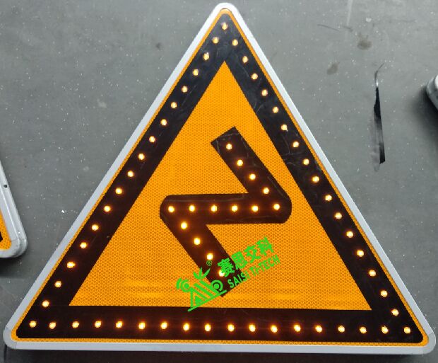 (一)提前預(yù)警坡道、彎道路段。隨著氣溫的持續(xù)降低,我國大部分地區(qū)全天候氣溫已出現(xiàn)零度以下數(shù)值,潮濕路面隨時有結(jié)冰的可能,普通道路采用降低車速管控尚可應(yīng)付,在坡道、彎道等路段,由于道路冰凝現(xiàn)象出現(xiàn),路面形成低摩擦系數(shù)的鏡面特征,緊急情況下的車輛制動已無法如平常一樣奏效,駕駛及制動預(yù)期已大打折扣,這將大大催生車輛在爬坡時倒溜、轉(zhuǎn)彎時側(cè)滑、危險情況下的制動距離增大等現(xiàn)象的發(fā)生概率,鑒于此,需要對冬季事故易發(fā)的坡道、彎道路段,進行提前的動態(tài)限速(能根據(jù)天氣情況,實施設(shè)定道路限速值,如下圖左)、危險警告(采用LED外置點陣發(fā)光,如下圖左),增強路段司機的安全駕駛意識。