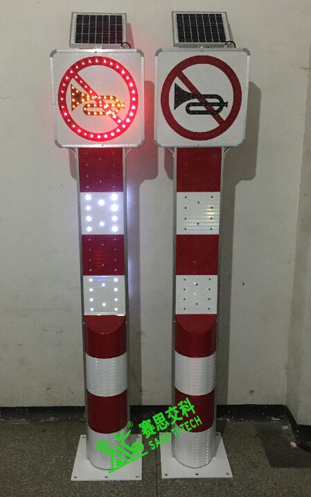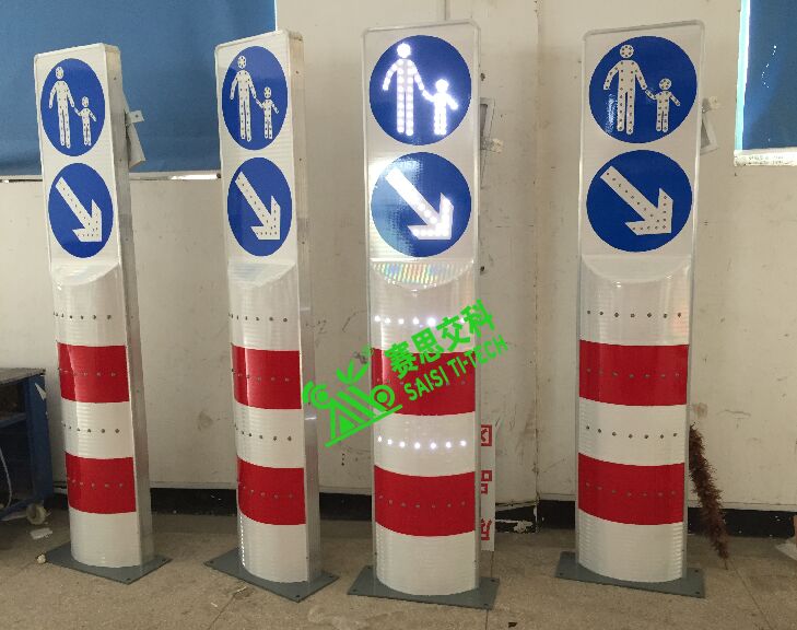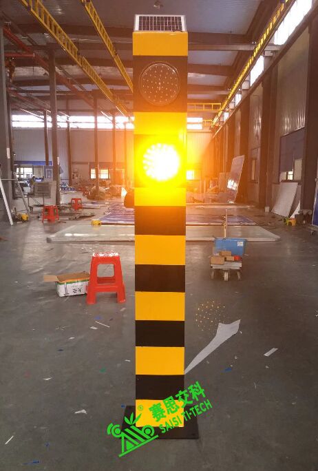 (二)高實(shí)用性。太陽(yáng)能道口閃光警示柱,其通體為主動(dòng)閃爍發(fā)光的LED燈珠,有效增益設(shè)備在夜間、惡略天氣中的識(shí)別率,既增強(qiáng)了警示效果,又提高了交通語(yǔ)言信息的遠(yuǎn)距離視認(rèn)性。其上部標(biāo)志可以為:右下行、注意行人(兒童)、機(jī)動(dòng)車(chē)與非機(jī)動(dòng)車(chē)的路權(quán)指引、黃閃警示燈、禁止掉頭等標(biāo)志圖案,款式多樣,能滿(mǎn)足多種危險(xiǎn)場(chǎng)景需求。