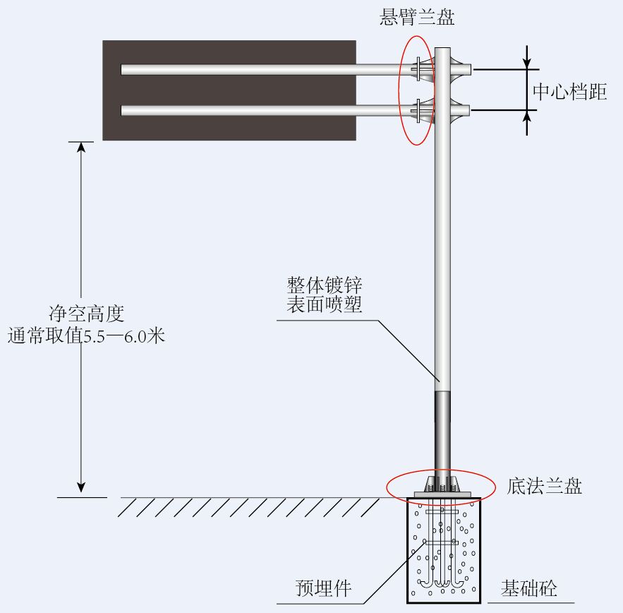 (3)桿件檔距設(shè)計(根據(jù)標志高度而定),下圖為錯誤的檔距設(shè)置圖例。