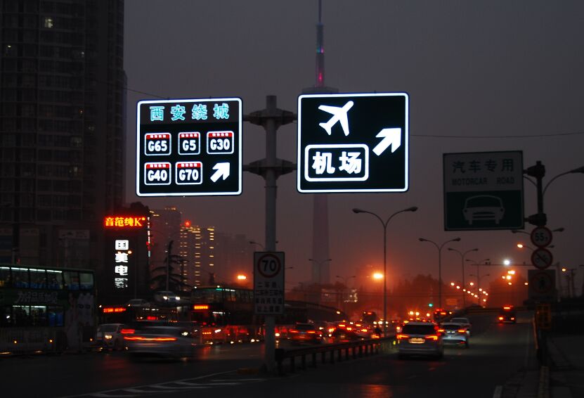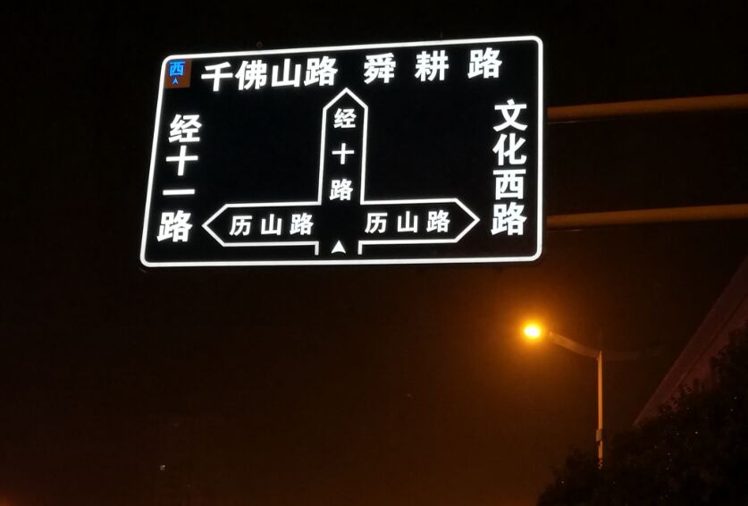 1、指示、指路類標志(深色底膜,白色字符膜,因白色反光膜的透光率強,其它顏色透光率弱,不適合采用半透工藝,特別式黑色字膜不透光);
