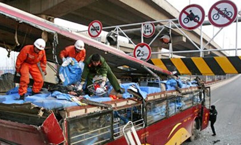 因橋梁限高,或區(qū)域特殊管制需求,各地限高龍門架設(shè)置不在少數(shù),但“限高架削平公交車頂”、“消防車無法通過限高架”等關(guān)鍵搜索短語,隨便在百度上搜索一下,出來的事故照片五花八門。從失效安全設(shè)計(jì)理念考慮,部分廠家已研制出彈性限高架,和智能限高架,當(dāng)超高車輛通過限高架時(shí),門架橫檔能柔性偏移,不至于被強(qiáng)行“刮痧”,命懸一線。