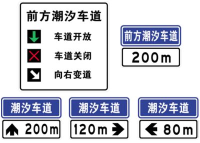 (3)潮汐車(chē)道周邊應(yīng)設(shè)置公告牌,明確指示潮汐車(chē)道位置,并清晰告知潮汐車(chē)道運(yùn)行時(shí)間段及運(yùn)行方向。